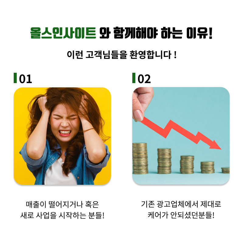 저희 올스인사이트는 최소의 광고비용으로 최대한의 매출증진의 효과로 보여드릴것이며