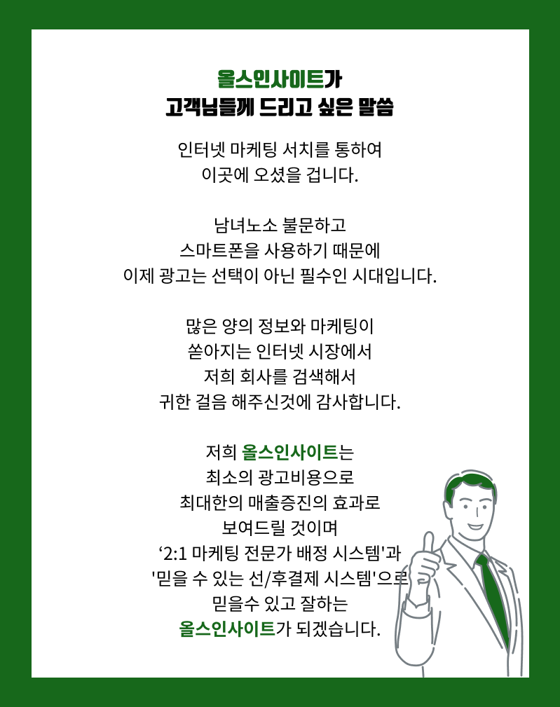 믿을수 있고 잘하는 올스인사이트가 되겠습니다.